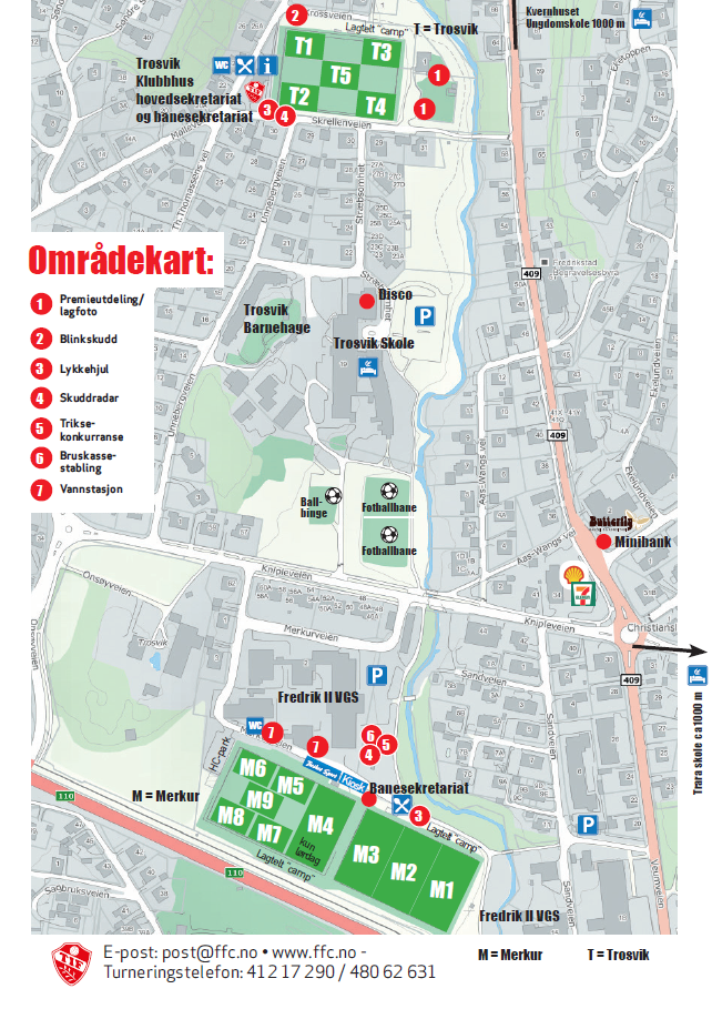 Våre arenaer, spesielt Trosvikbanen, ligger midt i etablerte boligområder. Vi ønsker å beholde et godt forhold til våre naboer og henstiller derfor til at våre besøkende benytter våre oppmerkede parkeringsområder. Våre ”parkeringsverter” som er plassert i området vil veilede dere til disse parkeringsområder. Vårt parkeringsgebyr er på den nette sum av kr. 50,-.